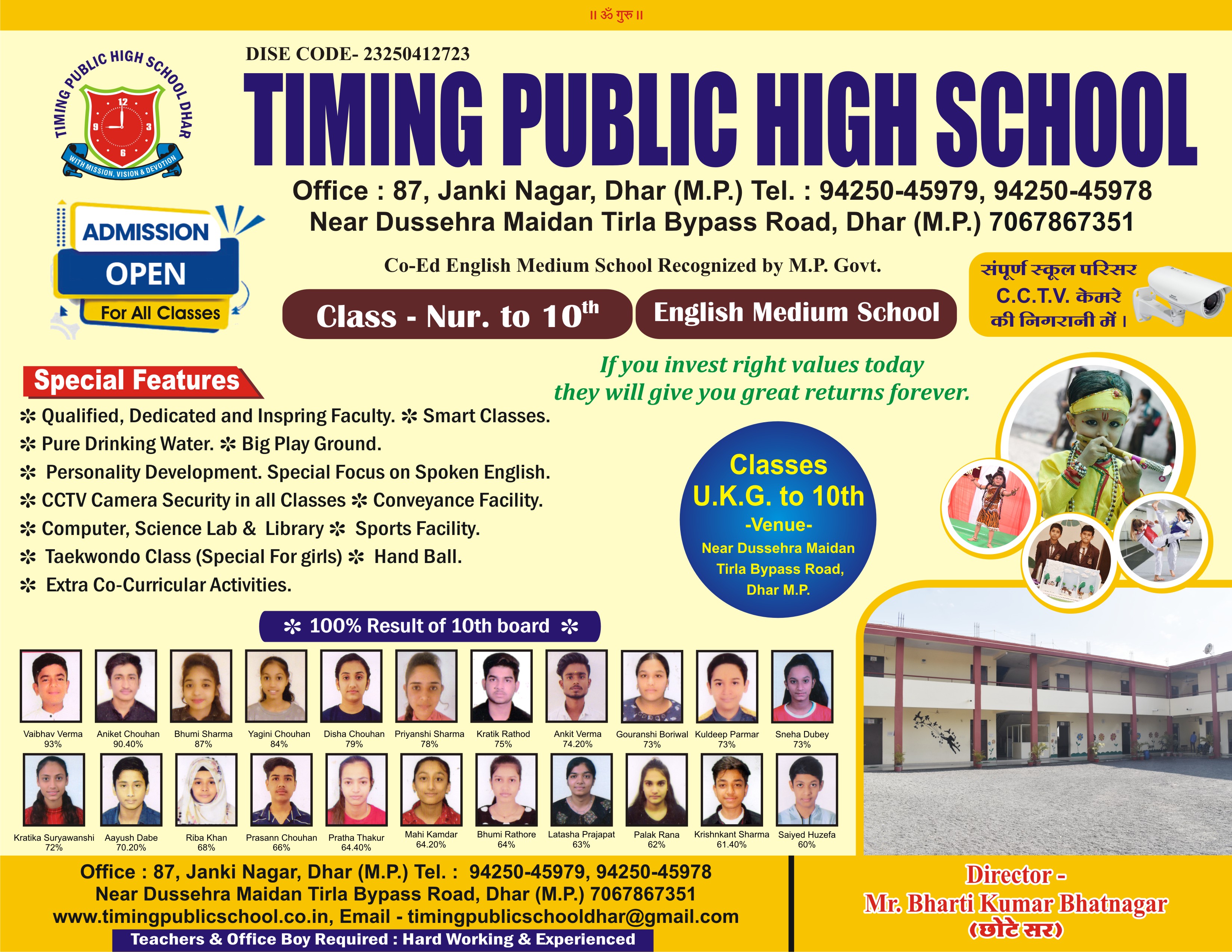 Office-87,Janki Nagar, Tirla By Pass Road Near Dusshera Maidan,Dhar-409500(M.P.)